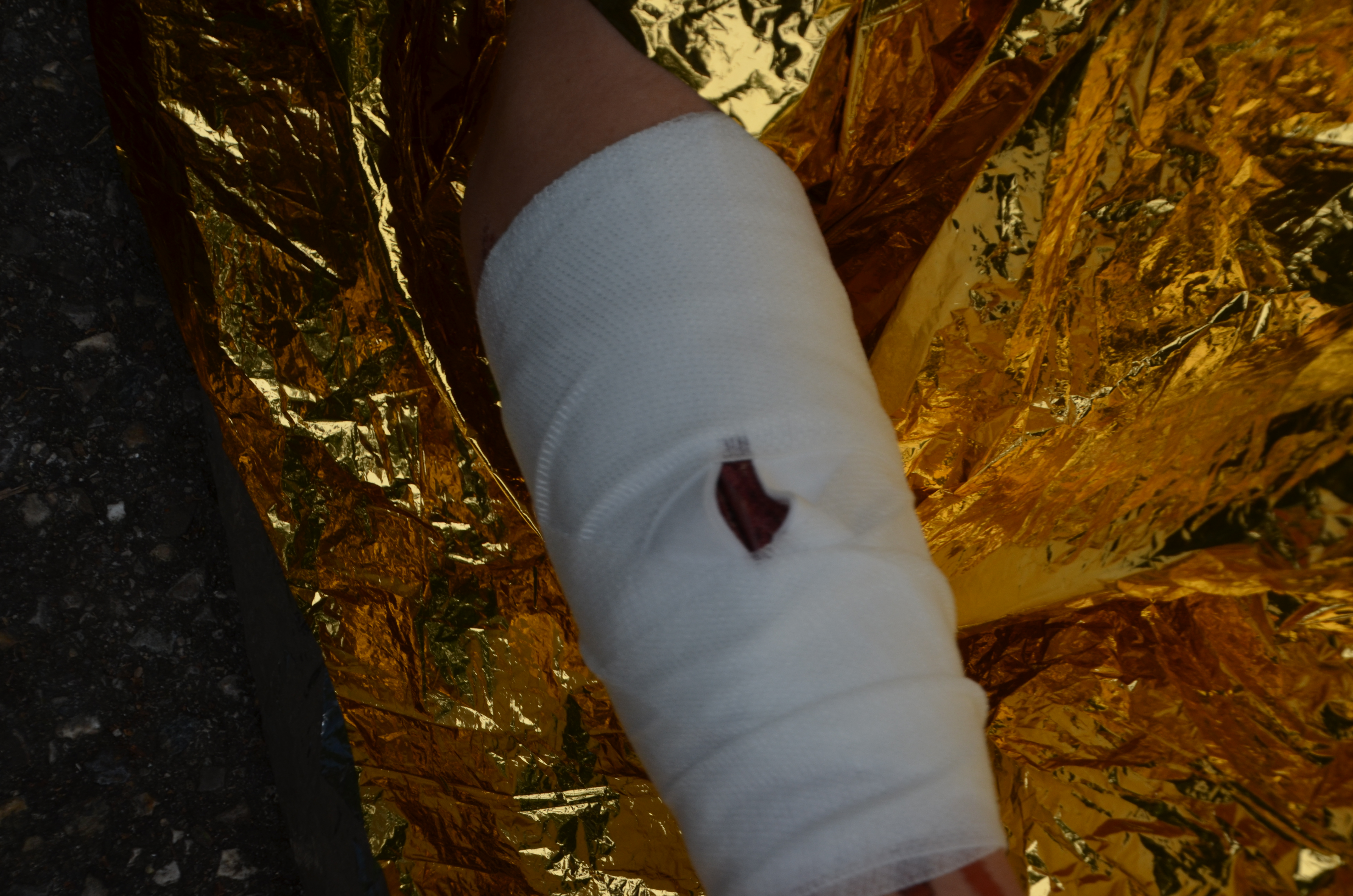Die unterschiedlichen Szenarien -  Explosion im Chemiesaal, Unfall mit einem Auto und einem Mofa - wurden so realistisch gespielt, dass die TeilnehmerInnen richtig in Stress kamen und so einen fast echten Eindruck einer wirklichen Notsituation erhielten.